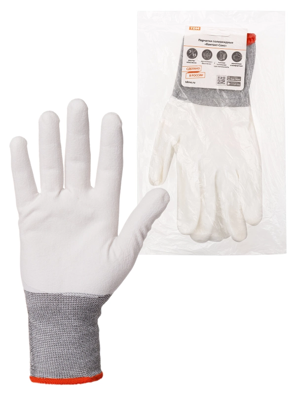 Перчатки полиамидные "Контакт-Сенс", полиуретановое покрытие, 7, 15 кл., 24-26 г, 1 пара, TDM