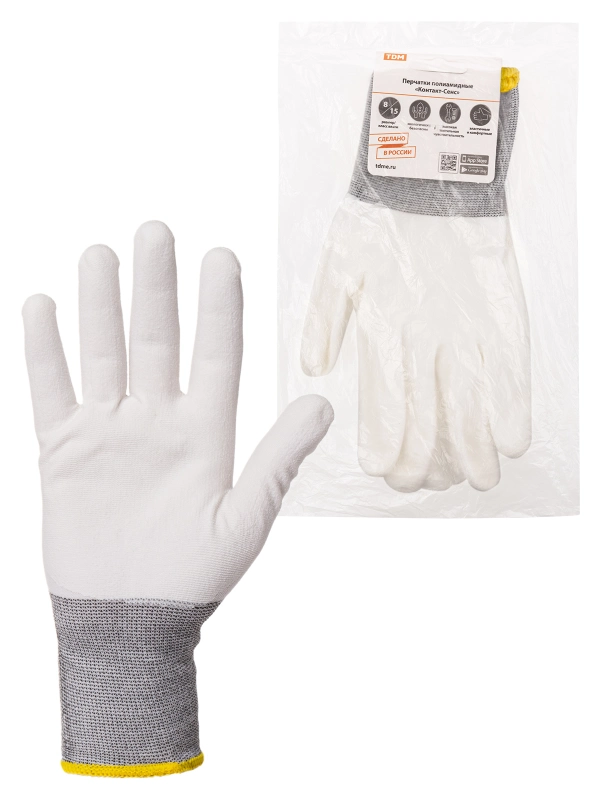 Перчатки полиамидные "Контакт-Сенс", полиуретановое покрытие, 8, 15 кл., 27-28 г, 1 пара, TDM