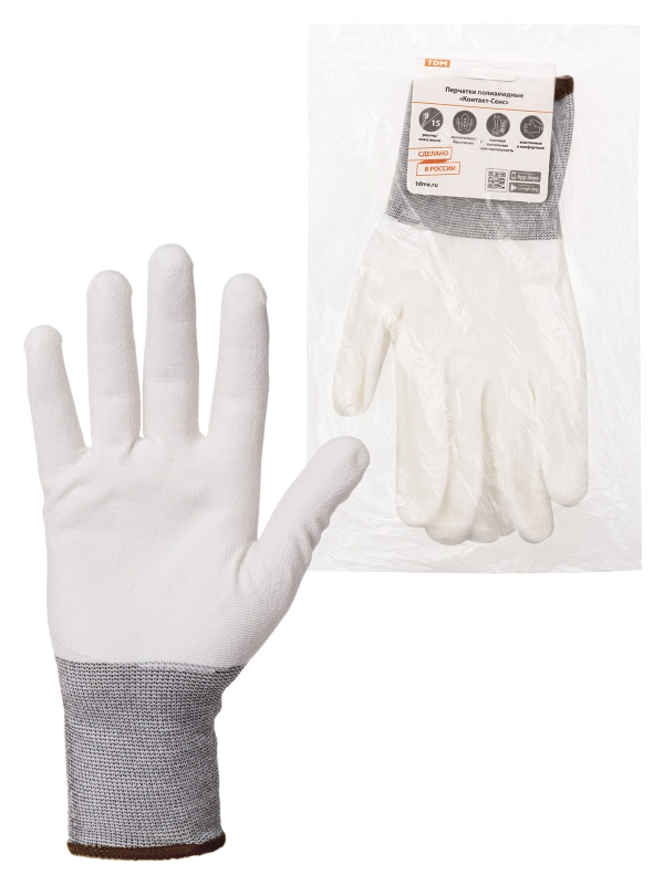 Перчатки полиамидные "Контакт-Сенс", полиуретановое покрытие, 9, 15 кл., 29-31 г, 1 пара, TDM