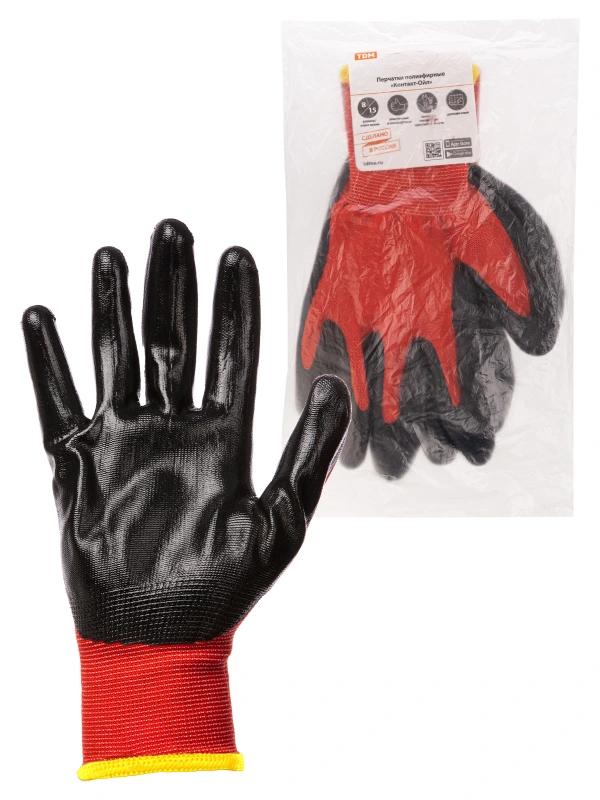 Перчатки полиэфирные "Контакт-Ойл", маслобензостойкое покрытие, 8, 15 кл., 40-41 г, 1 пара, TDM