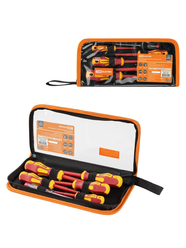 Набор диэлектрических отверток №1, тканевый пенал, 6 предметов, 1000 В, «ПрофиЭлектрик» TDM