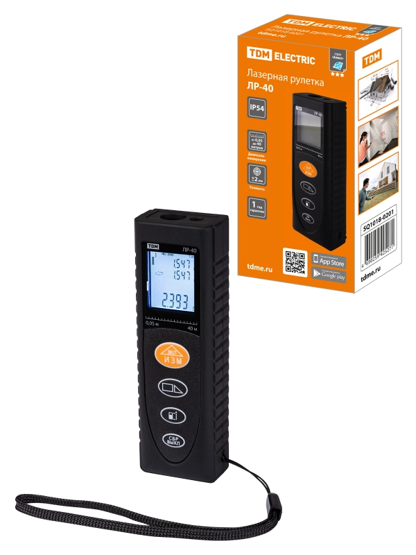 Лазерная рулетка ЛР-40, дальность 40 м, точность 2 мм, подсветка, IP54, 2хAAA, “Алмаз” TDM