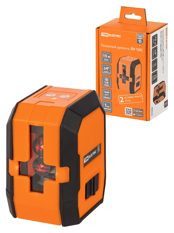 TDM Лазерный уровень ЛУ-1(К), 15 м ± 1 мм/5 м, два луча, 635 нм, красный луч, резьба 1/4, «Гранит»