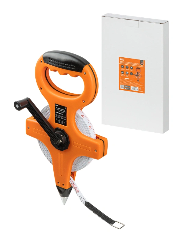 TDM Мерная лента, 30 м х 13 мм, фибергласовое полотно, открытый корпус, штык для фиксации "Рубин"