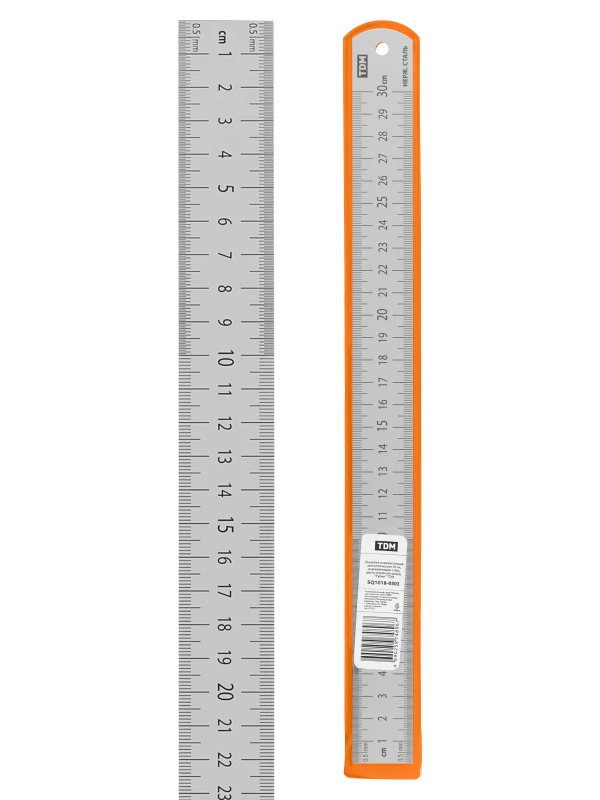 TDM Линейка измерительная металлическая 30 см, нержавеющая сталь, двухсторонняя шкала, "Рубин"