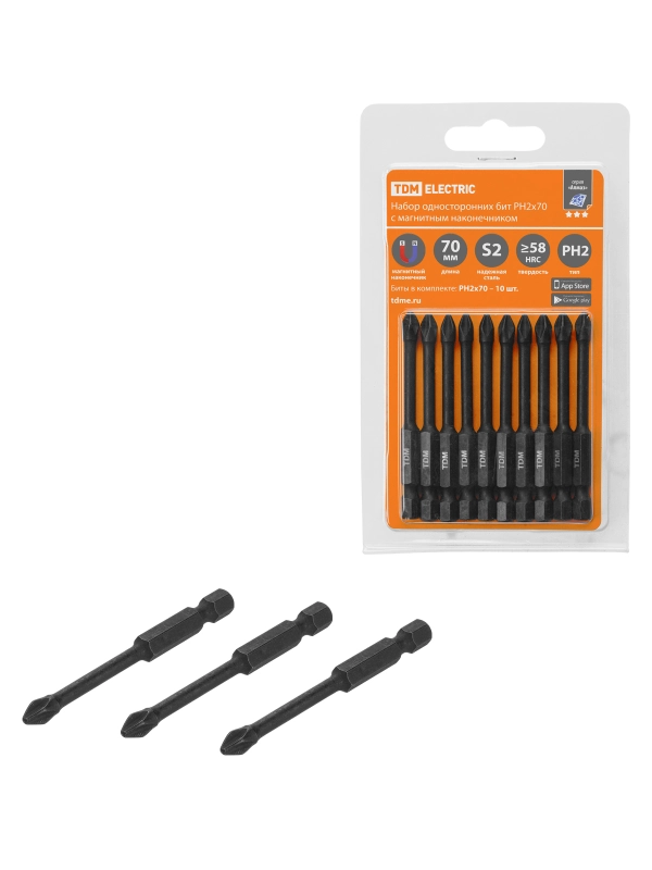 TDM Набор бит PH2x70, односторонних, сталь S2, Е 1/4", намагниченные, торсионные, 10 шт., «Алмаз»