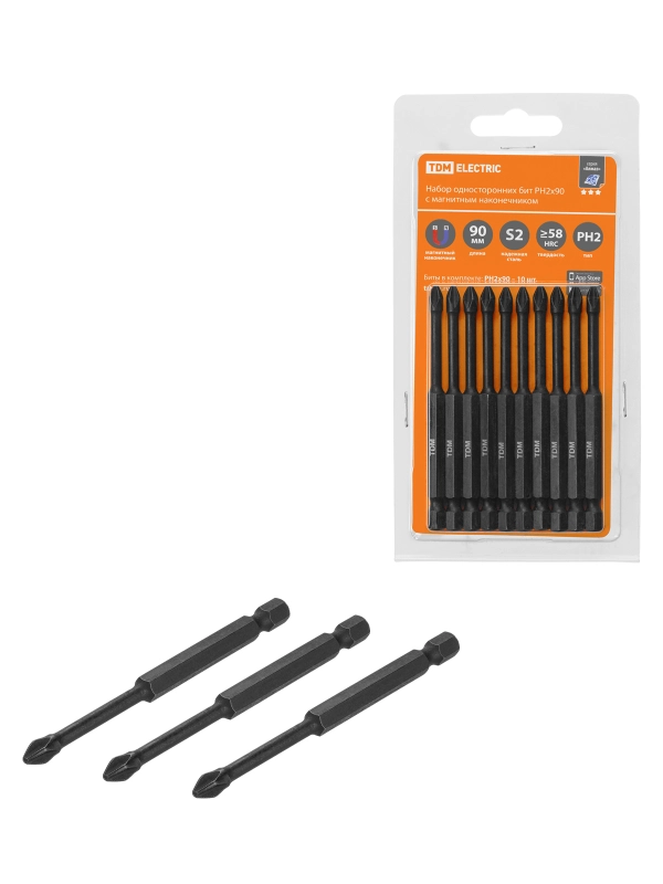 TDM Набор бит PH2x90, односторонних, сталь S2, Е 1/4", намагниченные, торсионные, 10 шт., «Алмаз»