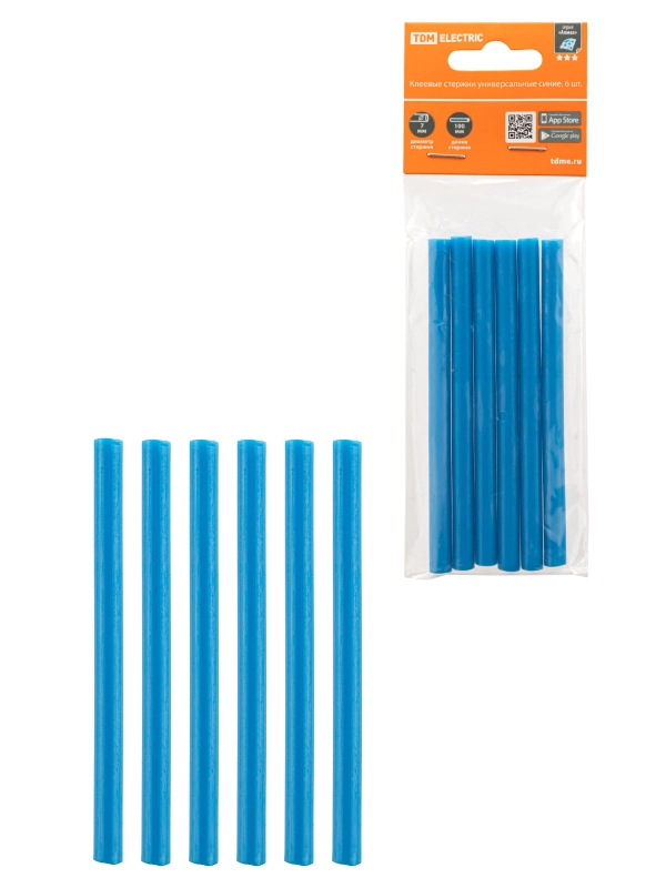 TDM Клеевые стержни универсальные синие, 7 мм x 100 мм, 6 шт, "Алмаз"