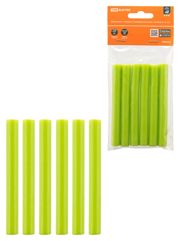 TDM Клеевые стержни универсальные зеленые, 11 мм x 100 мм, 6 шт, "Алмаз"