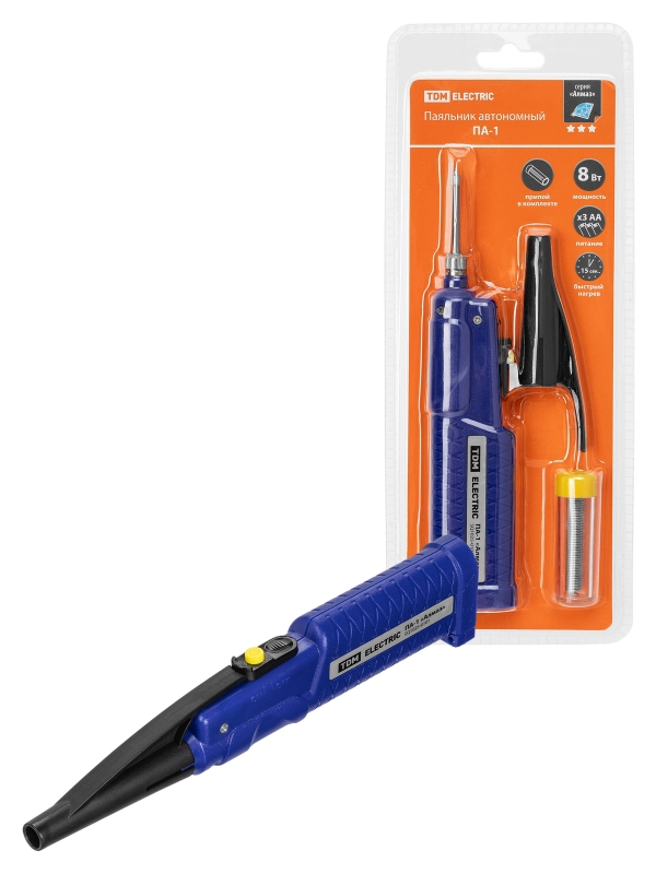 Паяльник автономный ПА-1, батареи типа 3хАА , с припоем "Алмаз" TDM