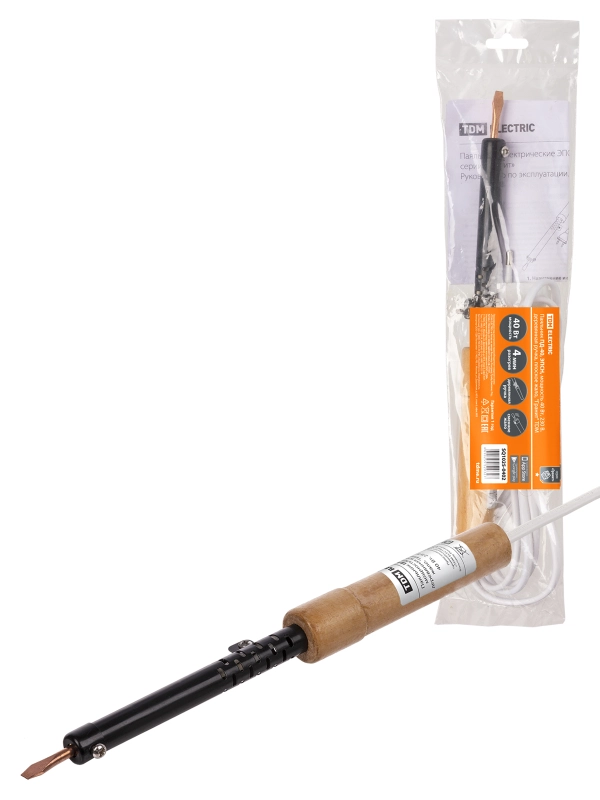 Паяльник ПД-40, ЭПСН, мощность 40 Вт, 230 В, деревянная ручка, плоское жало, "Гранит" TDM