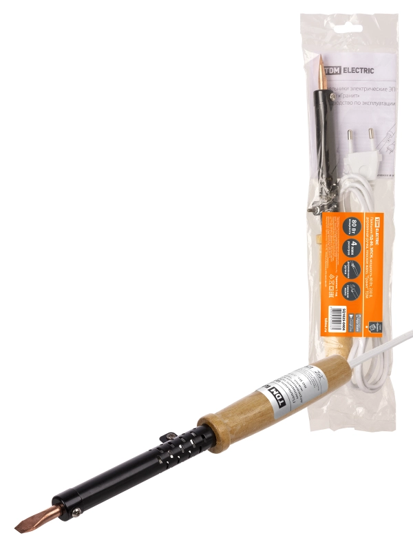 Паяльник ПД-80, ЭПСН, мощность 80 Вт, 230 В, деревянная ручка, плоское жало, "Гранит" TDM
