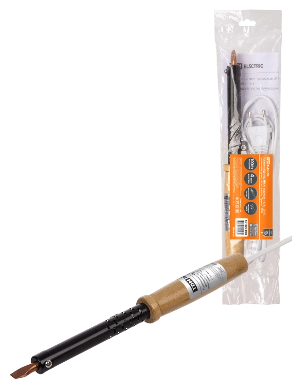 Паяльник ПД-100, ЭПСН, мощность 100 Вт, 230 В, деревянная ручка, плоское жало, "Гранит" TDM
