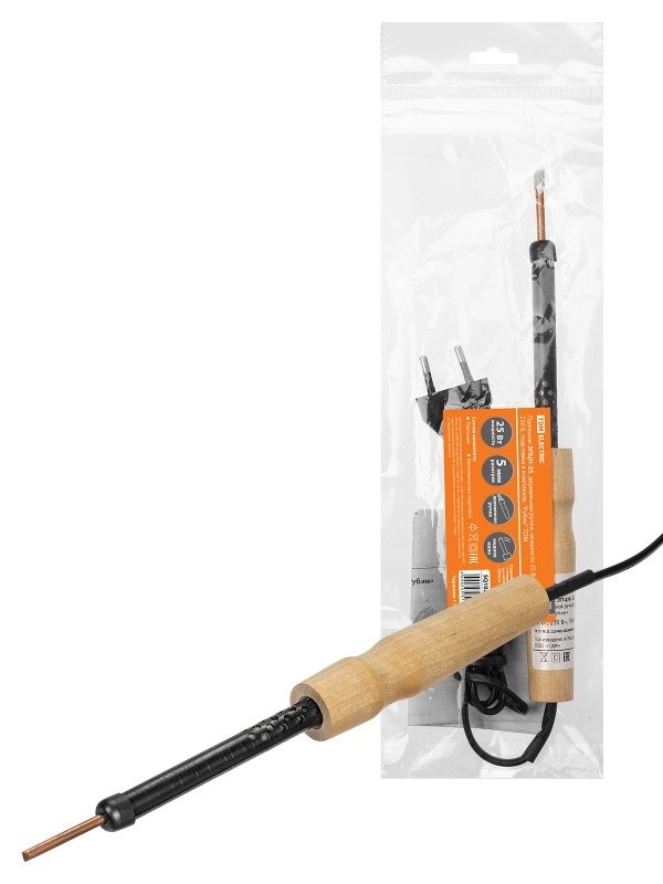 Паяльник ЭПЦН-25, деревянная ручка, мощность 25 Вт, 230 В, подставка в комплекте, "Рубин" TDM