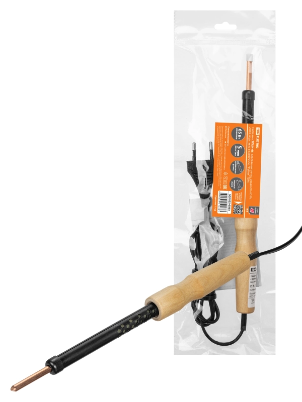 Паяльник ЭПЦН-65, деревянная ручка, мощность 65 Вт, 230 В, подставка в комплекте, "Рубин" TDM