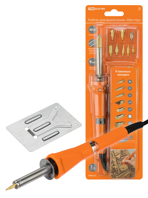 TDM Набор для выжигания "Мастер", паяльник 30 Вт, 230 В, 9 декоративных насадок, подставка, блистер,