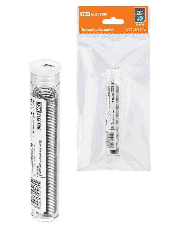 Припой ПОС 61, трубка с канифолью, ГОСТ 21931-76, ?1 мм, 16 г, колба, серия "Алмаз" TDM