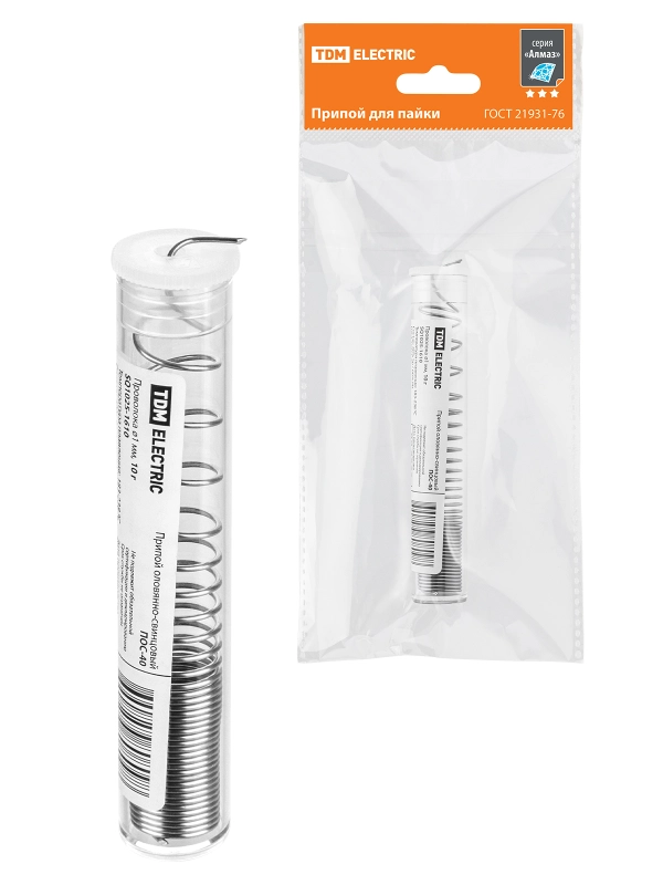 Припой ПОС 40, проволока, ГОСТ 21931-76, ?1 мм, 10 г, колба, серия "Алмаз" TDM