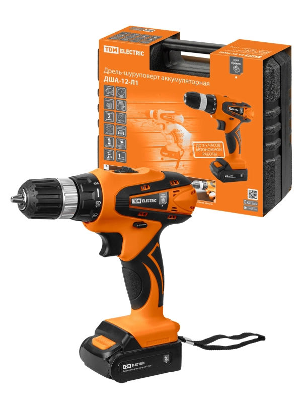 Дрель-шуруповерт акк. ДША-12-Л1 12 В, 1,3 А*ч Li-Ion, 22 Нм, 0-1350 об/мин, кейс, "Гранит" TDM