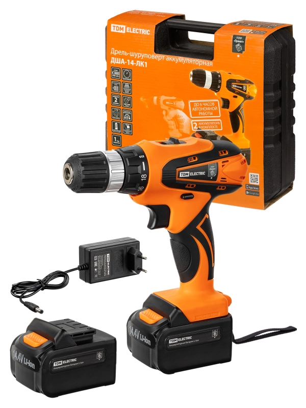 Дрель-шуруповерт акк. ДША-14-ЛК1 14 В, 1,3 А*ч Li-Ion 2 шт, 26 Нм, 0-1400 об/мин, кейс, "Гранит" TDM