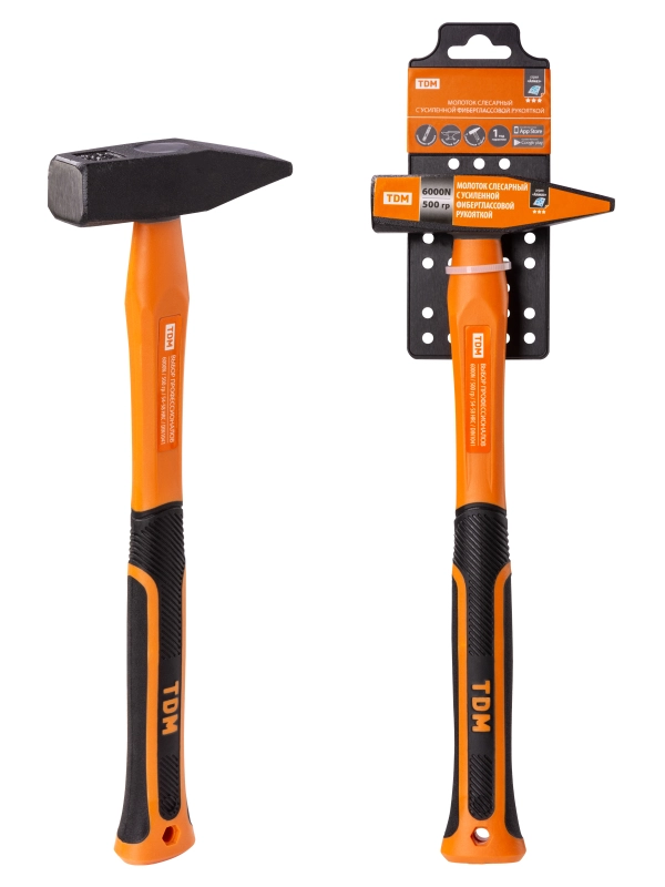 Молоток слесарный, 500 гр, кованый, с усилен. прорезиненной фиберглассовой рукояткой "Алмаз" TDM
