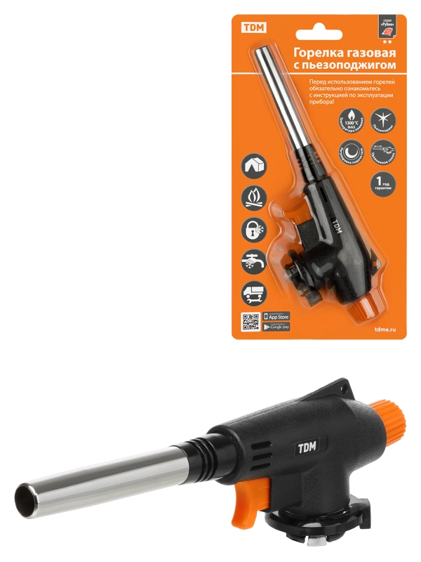 Горелка газовая удлин., ствол, регулятор подачи, пьезоподжиг, бутан, блистер, 1 шт., "Рубин" ТДМ