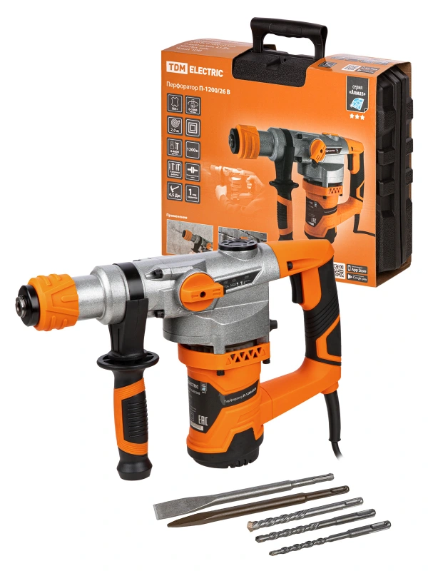Перфоратор П-1200/26 В, 1200 Вт, 0-1000 об/мин, 0-4600 уд/мин, 4.5 Дж, SDS-Plus, кейс "Алмаз" TDM