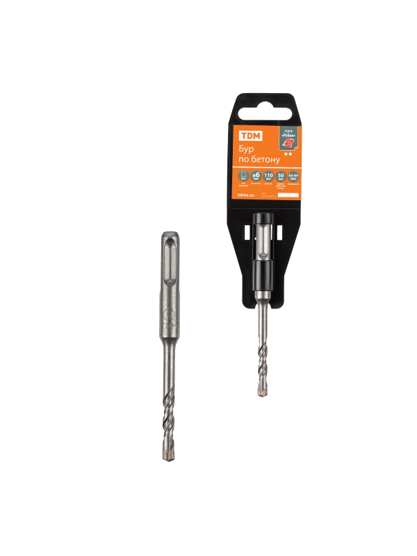 Бур по бетону, 6?110?50 мм, SDS-Plus, 4 резца, пластиковый держатель, 1 шт, "Рубин" TDM