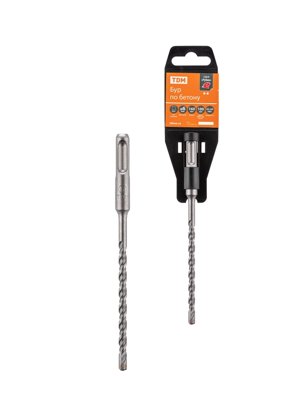 Бур по бетону, 6?160?100 мм, SDS-Plus, 4 резца, пластиковый держатель, 1 шт, "Рубин" TDM