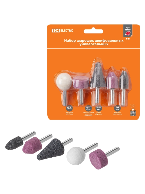 Набор шарошек шлифовальных, абразивных, ? 6 мм, L 45-60 мм, универсальные, 5 шт, "Рубин" TDM