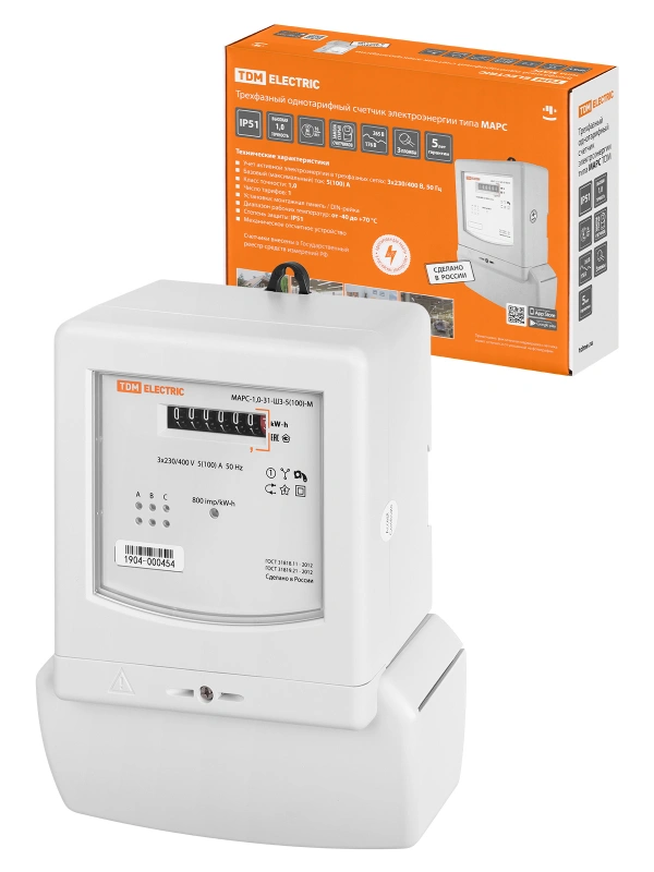Счетчик без поверки МАРС-б/п -1,0-31-Ш3-5(100)-М (3ф, 1тар,монт.панель, прямое подкл, мех.ОУ) TDM