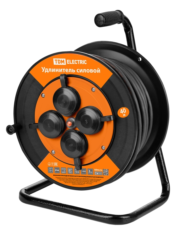 Удлинитель силовой УКз16-004 TDM (IP44 4 места/40м КГ 3х1,5 пласт. катушка)