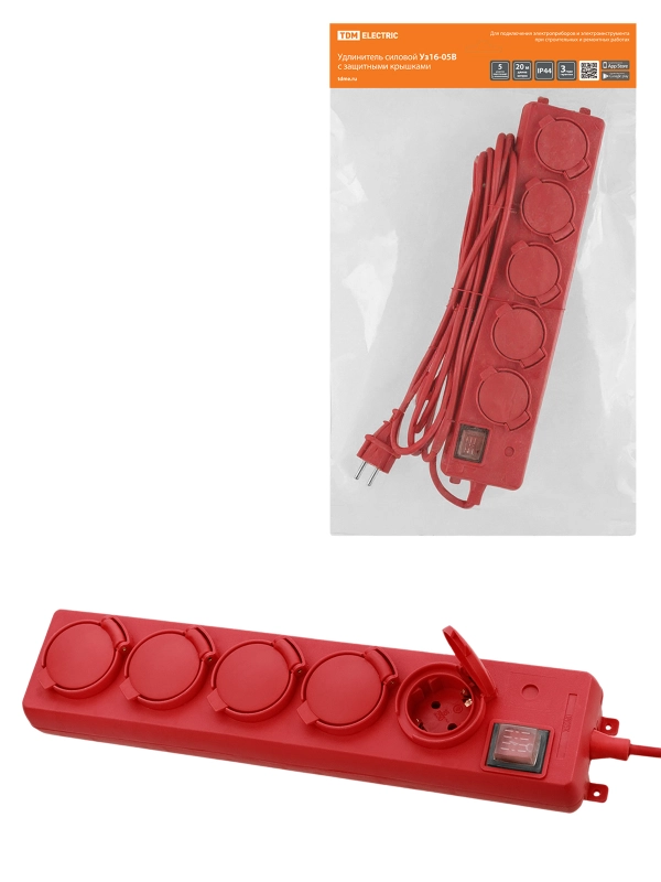 Удлинитель силовой Уз16-05В TDM (с крышками IP44, выключатель, 5 мест/20м ПВС 3х1,0)