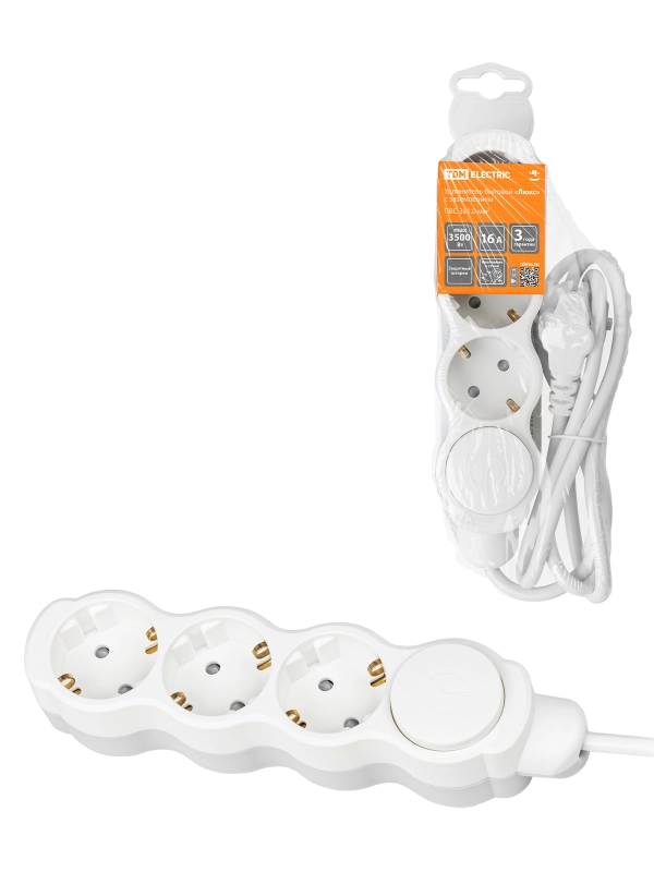Удлинитель бытовой "Люкс" с выкл., 3 гнезда, 5 м, с/з, с з/ш, ПВС 3х1 мм2, 16 А, 250 В, 3500 Вт TDM У1-33058