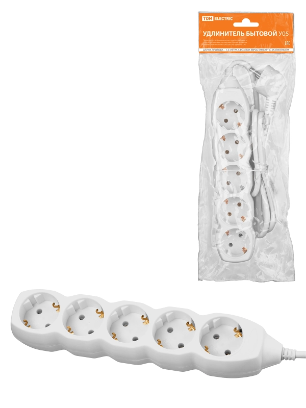 Удлинитель бытовой У05 5 гнезд, 1,5метра, с заземлением, ПВС 3х1мм2 16А/250В TDM