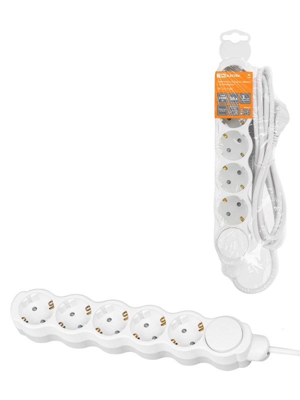 Удлинитель бытовой "Люкс" УЛ05В выкл, 5 гнезд, 1,5м, с/з, с з/ш, ПВС 3х1мм2 16А/250В бело-серый TDM