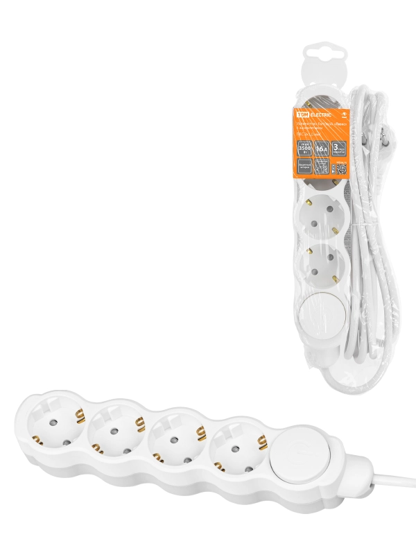 Удлинитель бытовой "Люкс" УЛ04В выкл, 4 гнезда, 7м, с/з, с з/ш, ПВС 3х1мм2 16А/250В бело-серый TDM