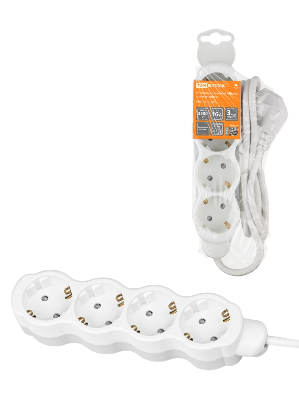 Удлинитель бытовой "Люкс" УЛ04 4 гнезда, 5м, с/з, с з/ш, ПВС 3х1мм2 16А/250В бело-серый TDM