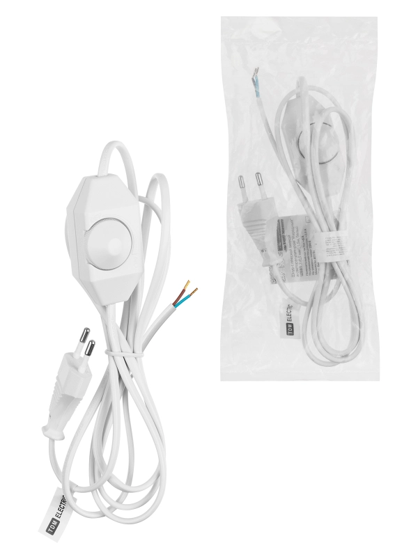 Шнур с плоской вилкой и светорегулятором "Народный" ШВВП 2х0,5 мм2, 1,5м, белый