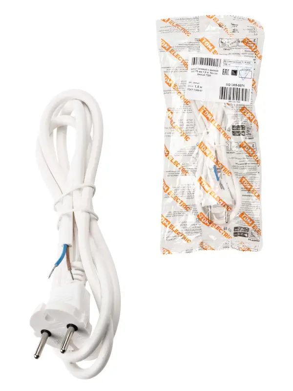 Шнур сетевой с вилкой ПВС 2x0,75мм2 1,5м б/з белый TDM