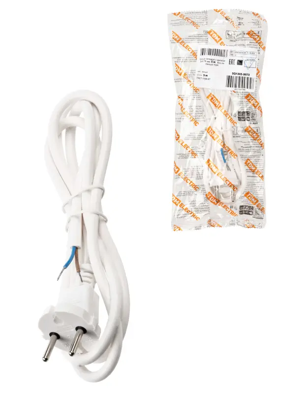 Шнур сетевой с вилкой ПВС 2x0,75мм2 5м б/з белый TDM