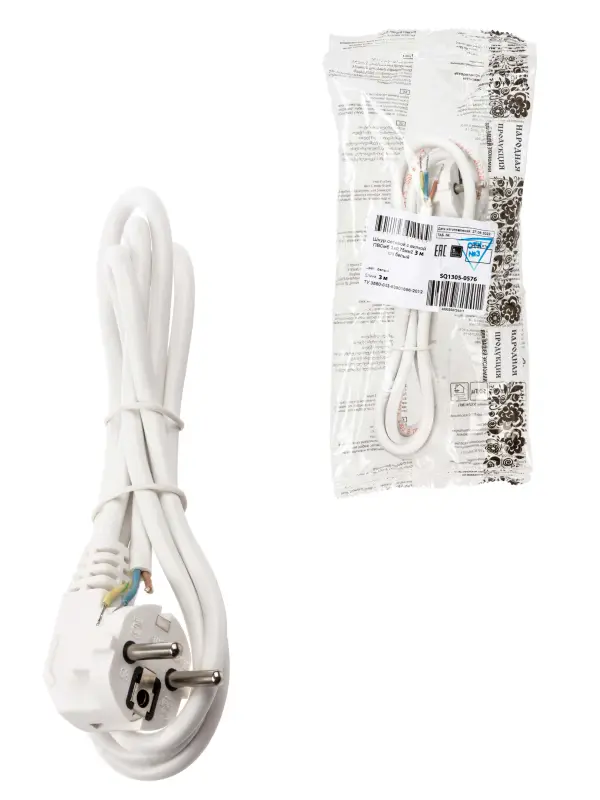 Шнур сетевой с вилкой ПВСмб 3x0,75мм2 3м с/з белый Народный