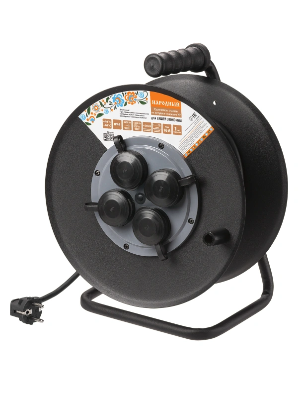 Удлинитель силовой УХз16-004 (метал. катушка, А3, 4 места IP44/30 м КГ 3500 Вт) Народный