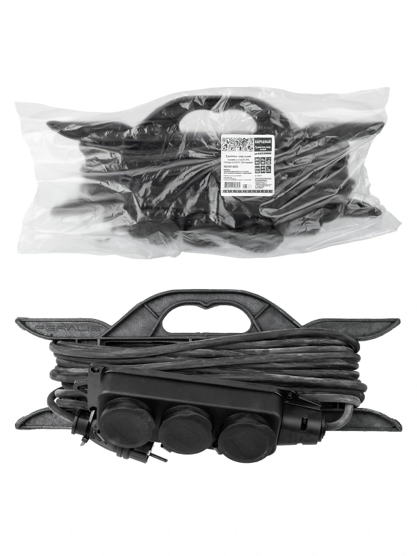 Удлинитель-шнур силовой на рамке, каучук, КГ, IP44, 3 гнезда с/з, 3700 Вт, 10м Народный