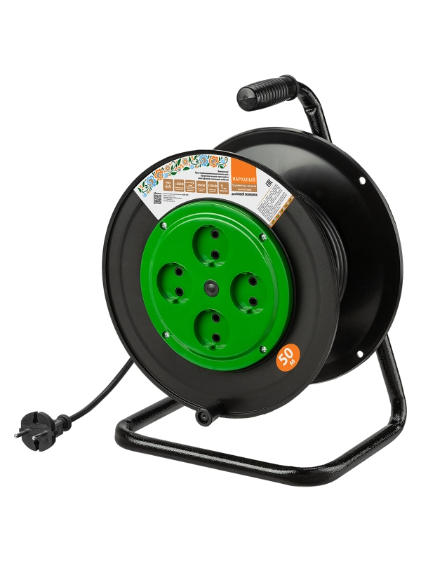 Удлинитель на катушке силовой народный 4 гнезда ПВС 1300 Вт б/з, 50м