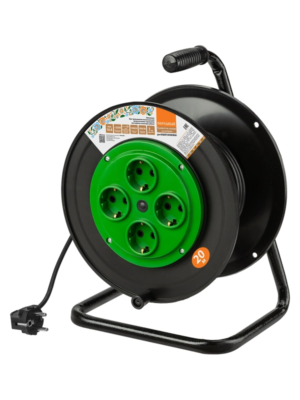 Удлинитель на катушке силовой народный 4 гнезда ПВС 3500 Вт с/з, 20м