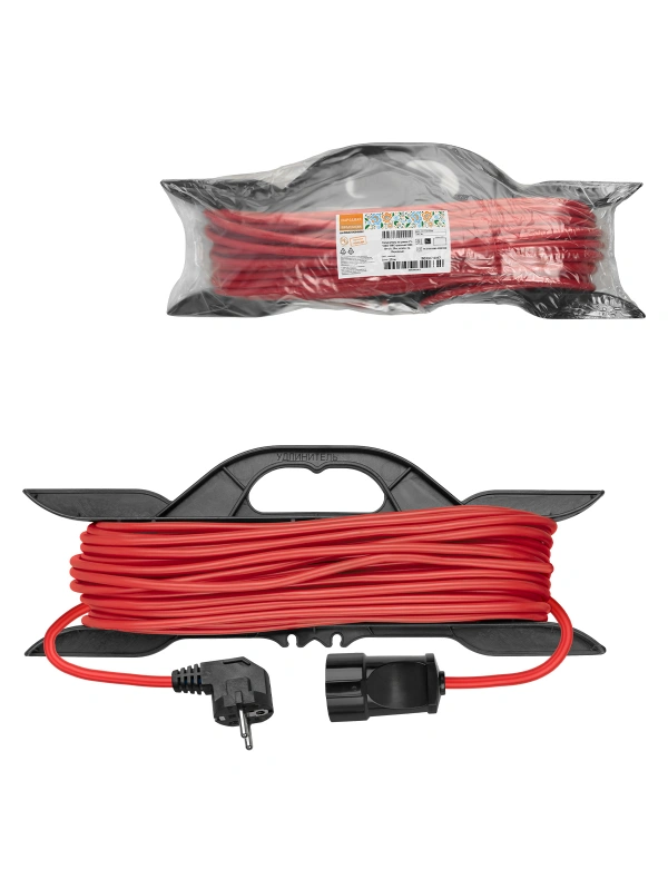 Удлинитель-шнур на рамке силовой У1-12037 ПВС красный 3500 Вт с/з, 20м, штепс. гнездо Народный