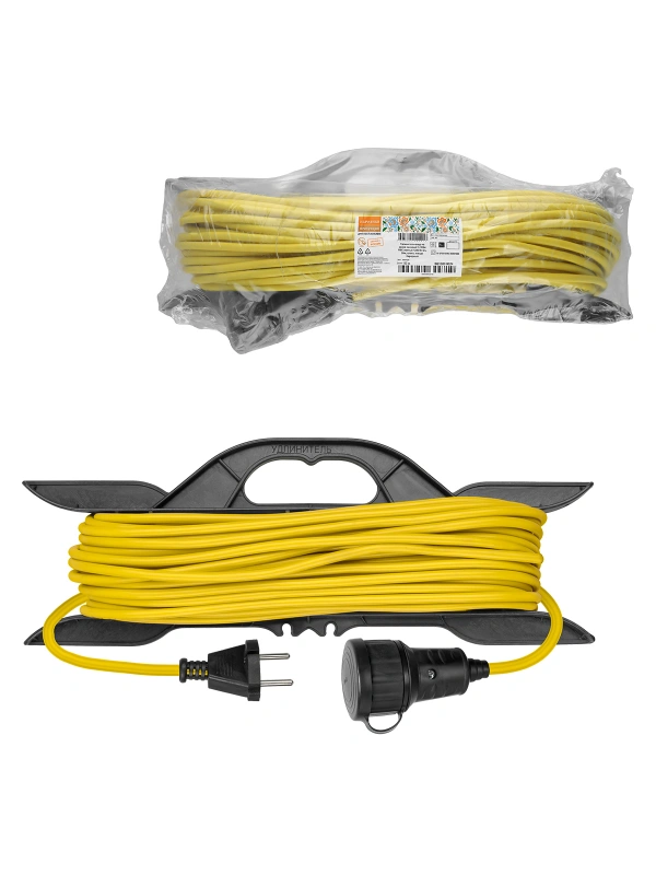 Удлинитель-шнур на рамке силовой У-11004 ПВС желтый 1300 Вт б/з, 50м, штепс. гнездо Народный