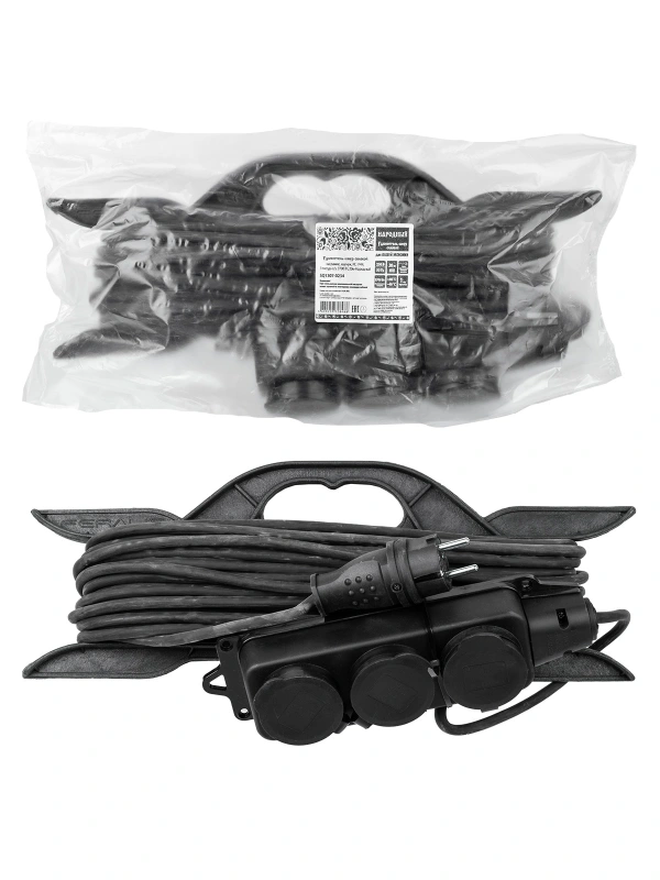 Удлинитель-шнур силовой на рамке, каучук, КГ, IP44, 3 гнезда с/з, 3700 Вт, 20м Народный