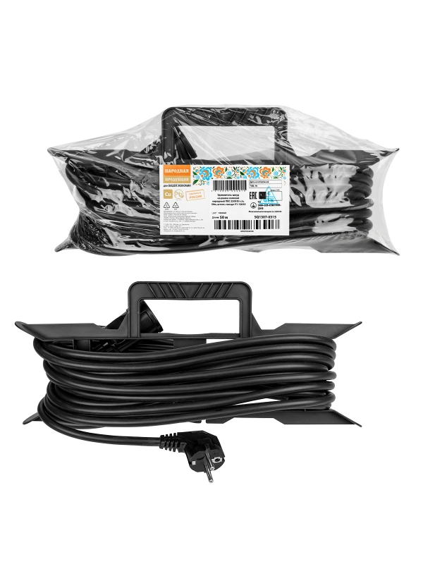 Удлинитель-шнур на рамке силовой народный У1-12035 ПВС 2200 Вт с/з, 50м, штепс. гнездо